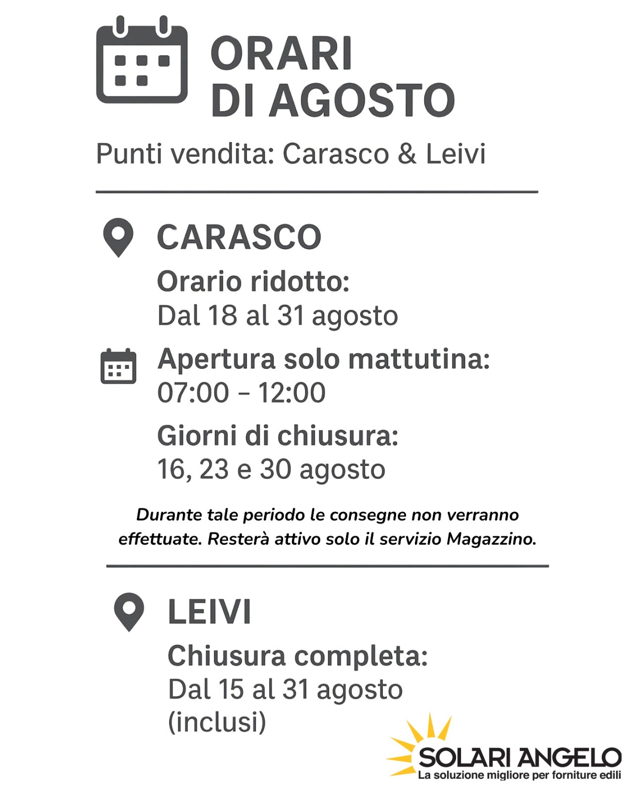Solari Angelo: rivendita materiale edile aperta ad agosto per imprese e professionisti del Levante Ligure